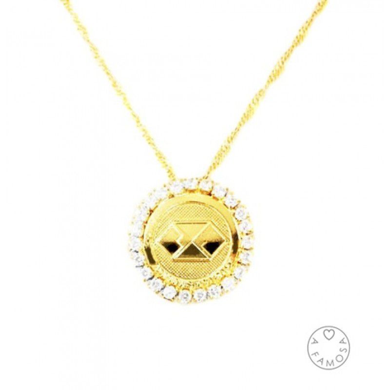 Medalha pequena com cravação de zircônias e acabamento de semi joia folheado em ouro amarelo 18k.